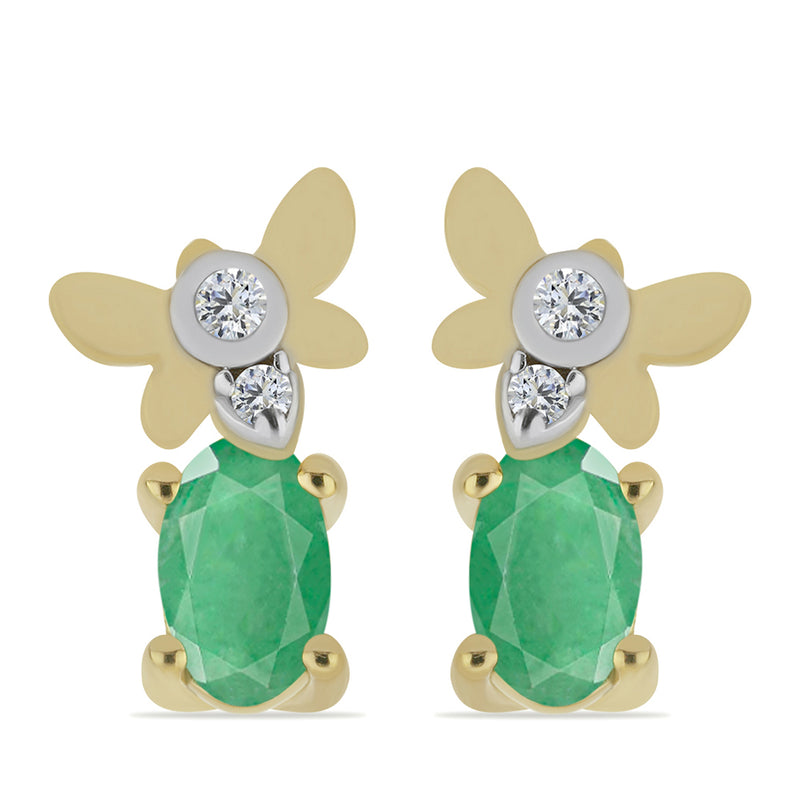 Pozlacené Stříbrné Náušnice s Brazilským Smaragdem a Bílým Zirkonem