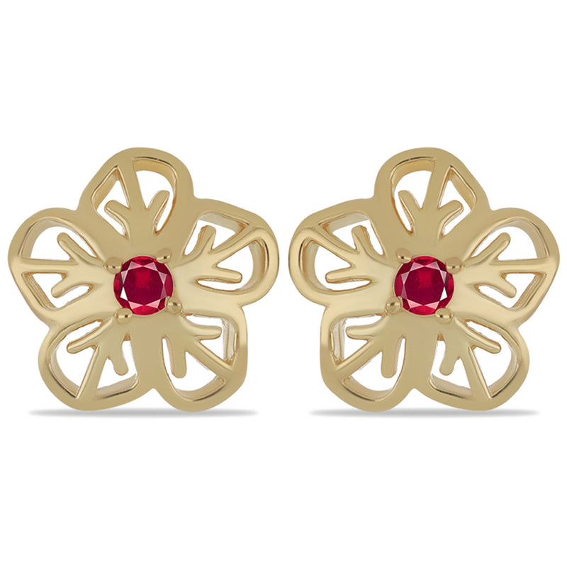 Pozlacené Stříbrné Náušnice s Červeným Diamantem