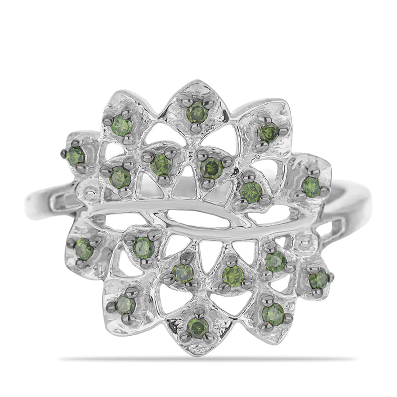 Stříbrný Prsten se Zeleným Diamantem