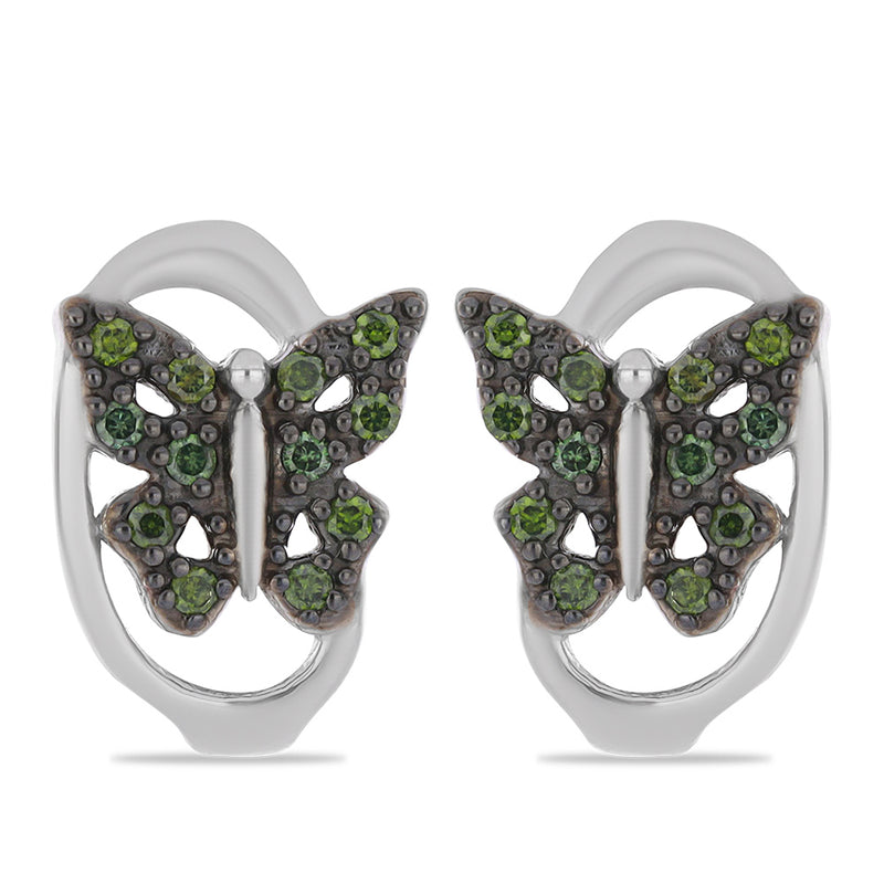 Stříbrné Náušnice se Zeleným Diamantem