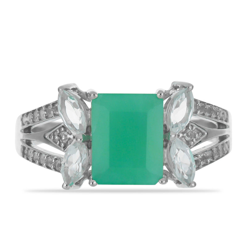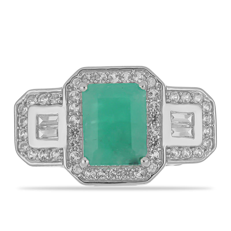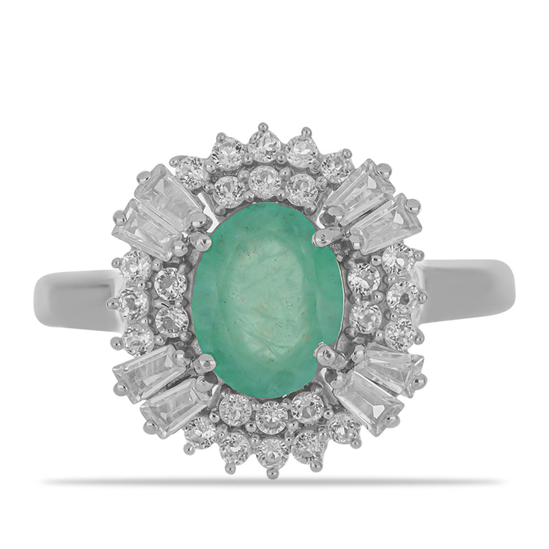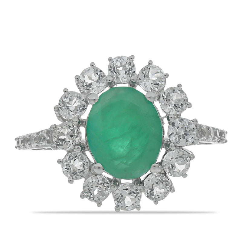 Stříbrný Prsten s Brazilským Smaragdem a Bílým Topazem