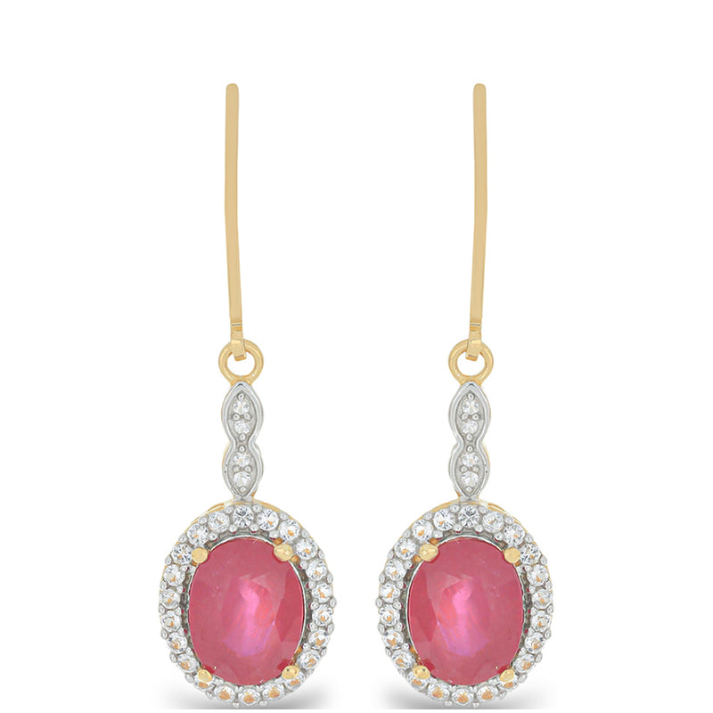 Pozlacené Stříbrné Náušnice s Madagaskarským Rubínem a Bílým Topazem