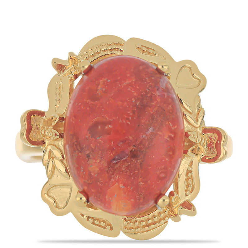 Pozlacený Stříbrný Prsten s Červeným Houbovým Korálem