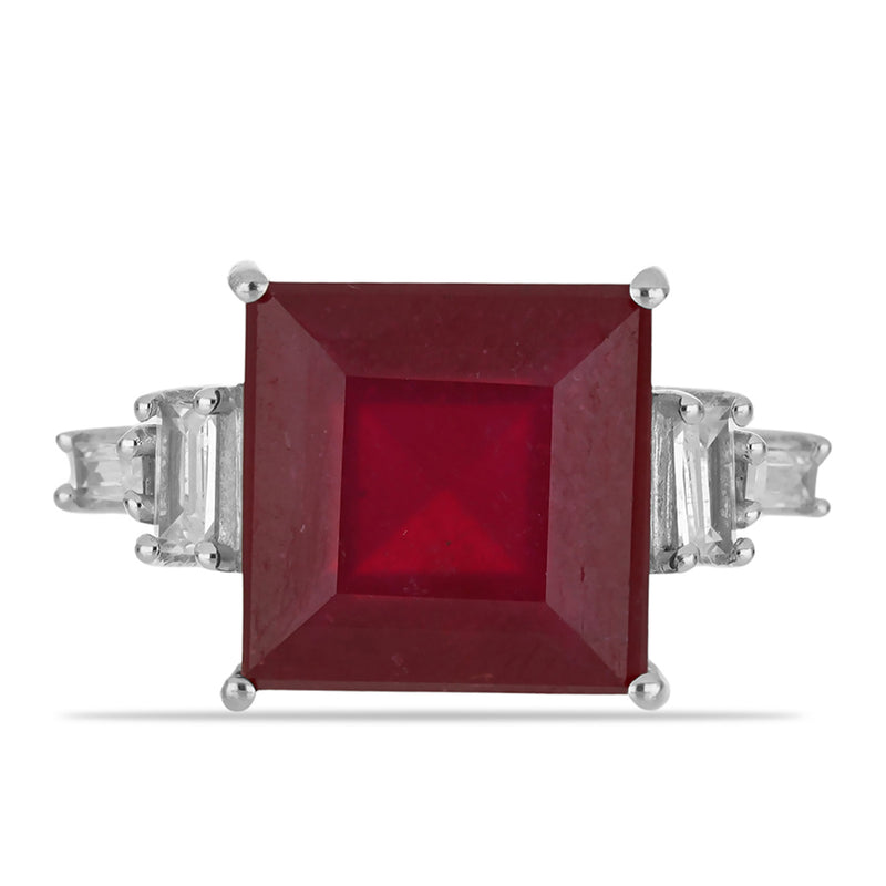 Stříbrný Prsten s Madagaskarským Rubínem a Bílým Zirkonem