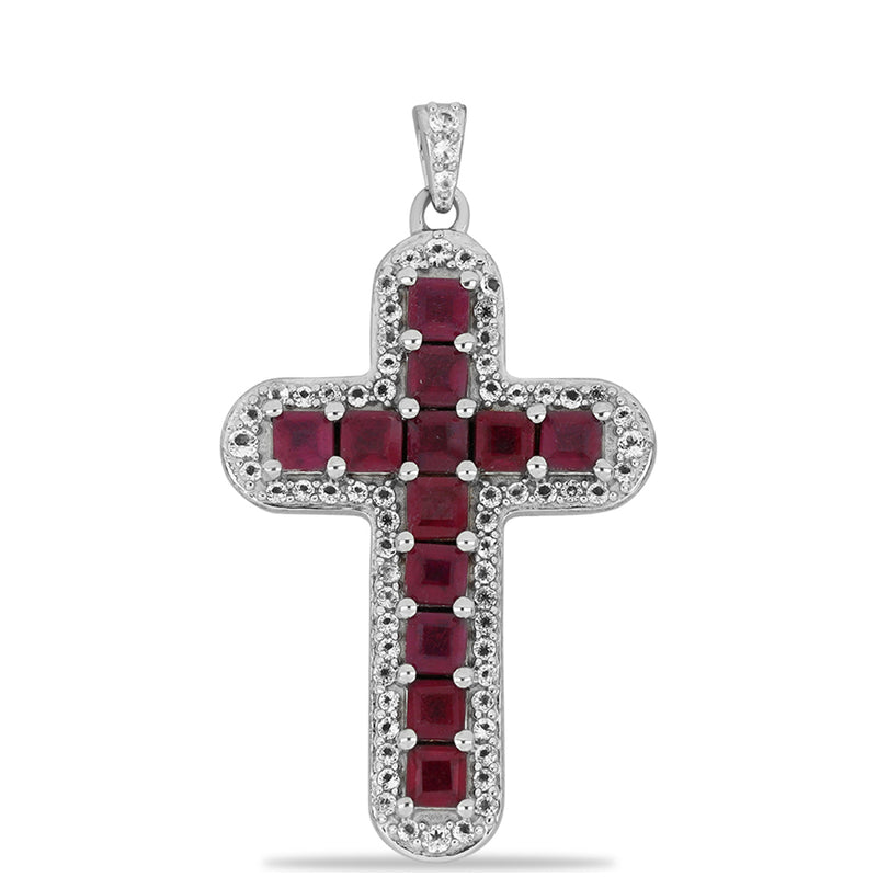 Kříž Stříbrný Přívěsek s Madagaskarským Rubínem a Bílým Topazem