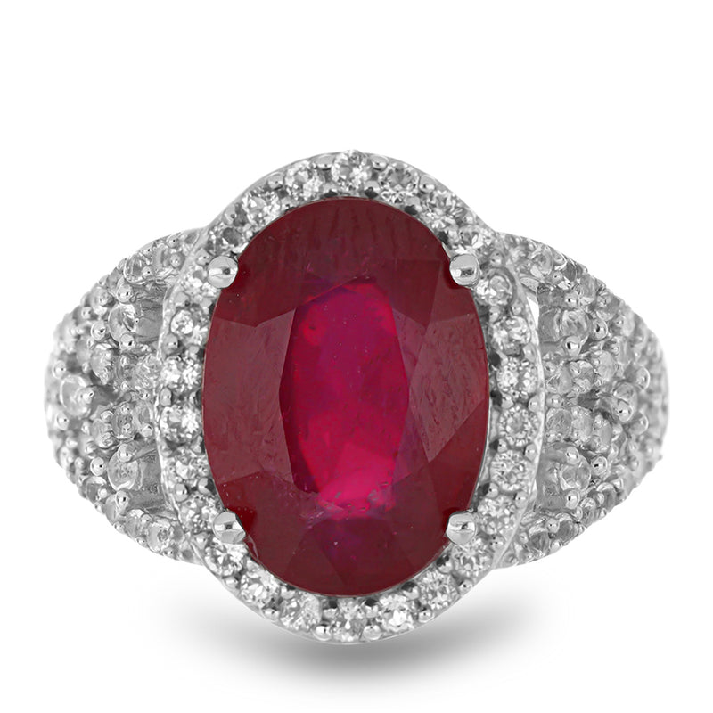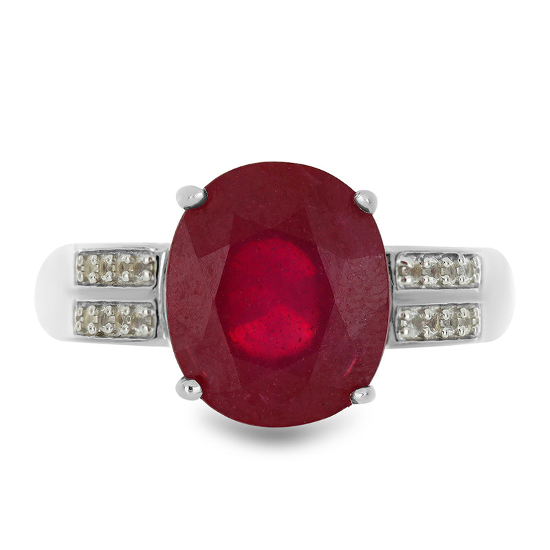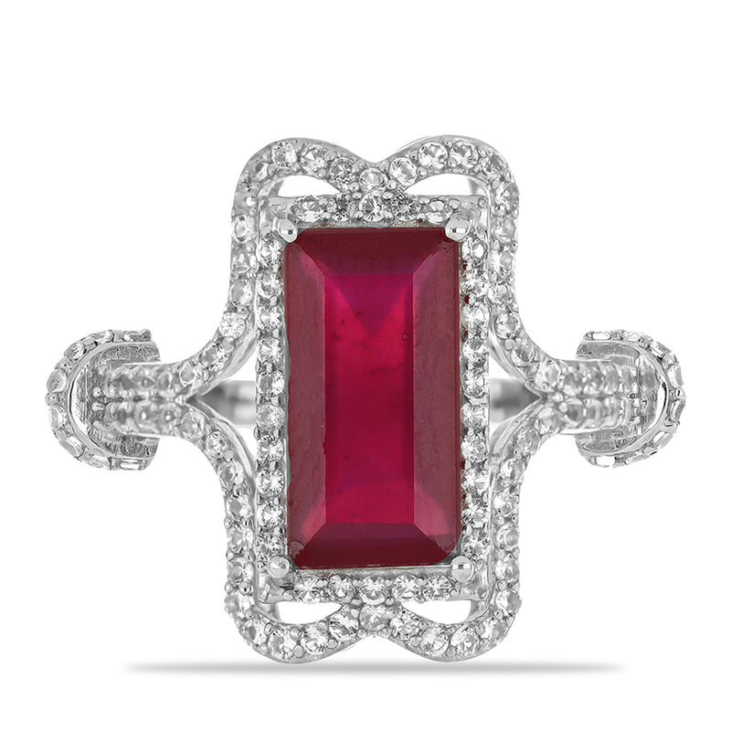 Stříbrný Prsten s Madagaskarským Rubínem a Bílým Topazem