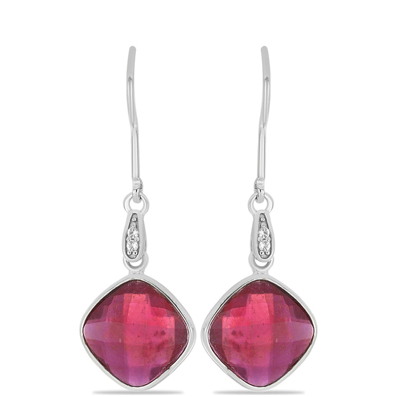 Stříbrné Náušnice s Madagaskarským Rubínem a Bílým Topazem