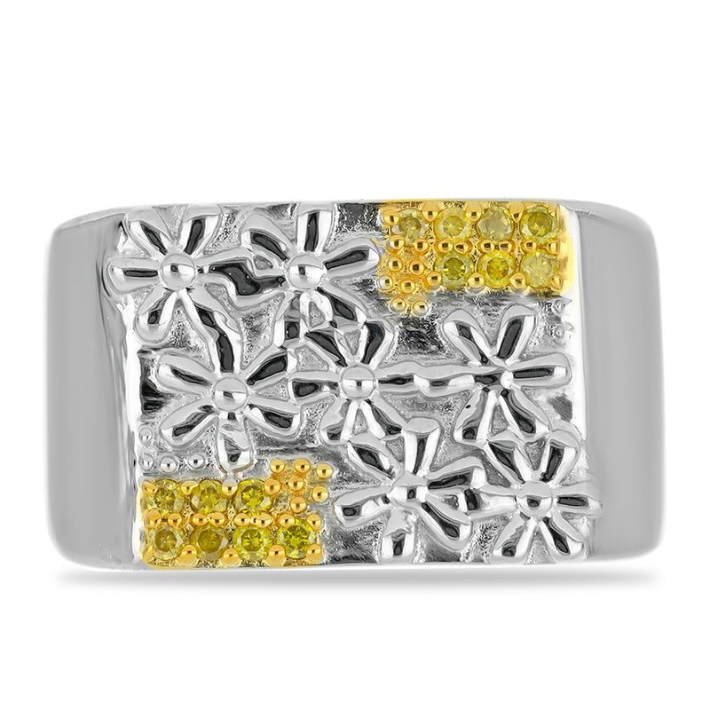 Stříbrný Prsten se Žlutým Diamantem