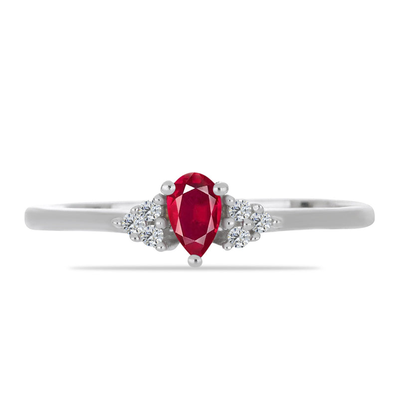Stříbrný Prsten s Madagaskarským Rubínem a Přírodním Bílým Zirkonem