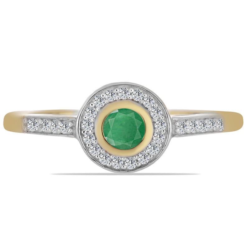 Pozlacený Stříbrný Prsten s Brazilským Smaragdem a Přírodním Bílým Zirkonem