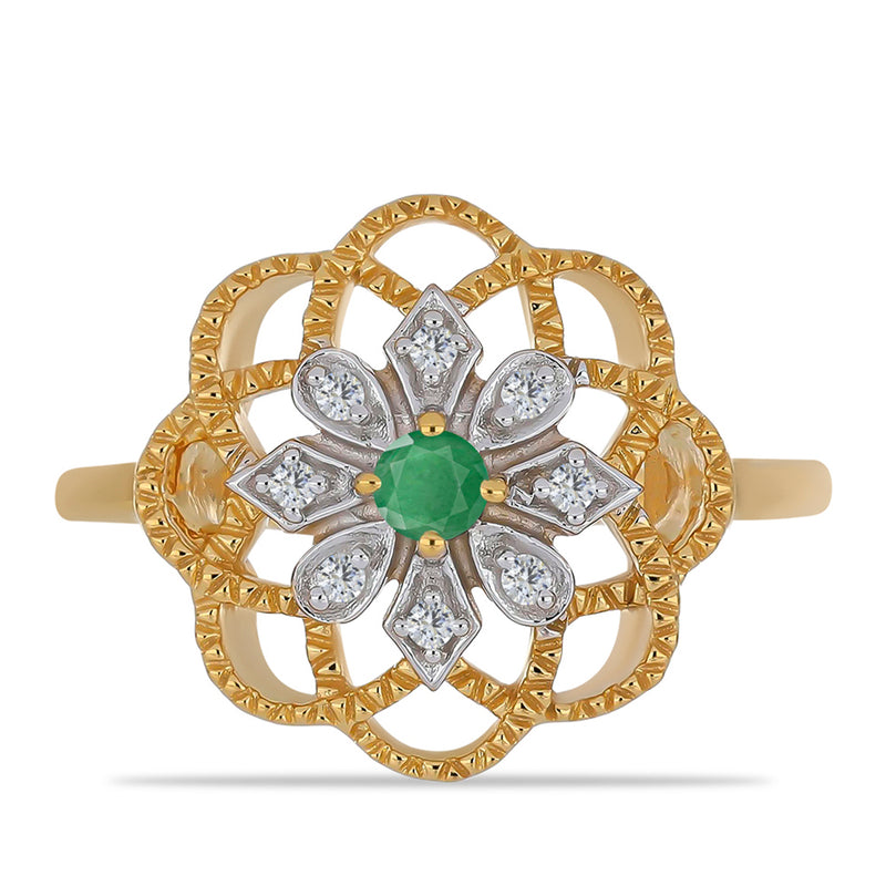 Pozlacený Stříbrný Prsten s Brazilským Smaragdem a Bílým Zirkonem