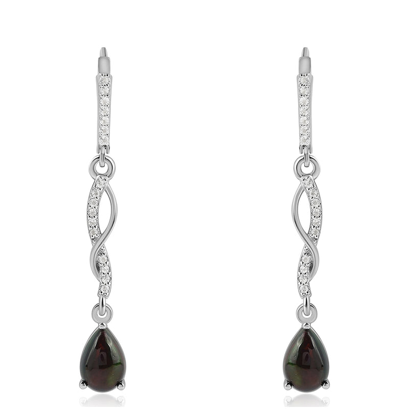 Stříbrné Náušnice s Půlnočně Černým Etiopským Opálem z Lega Dembi a Bílým Topazem