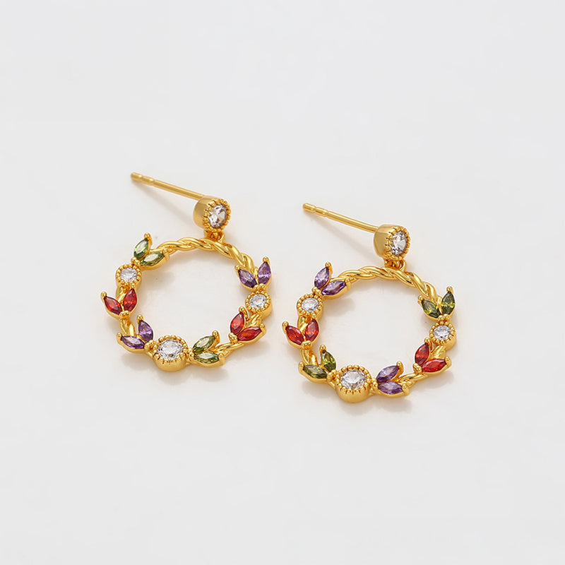 Pozlacené Slitinové Náušnice s Červeným Emporia® Křišťálem a Bílým Emporia® Křišťálem