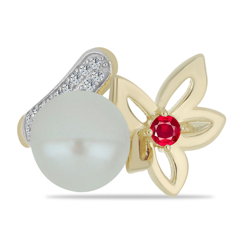 Pozlacený Stříbrný Prsten s Bílou Sladkovodní Perlou a Madagaskarským Rubínem