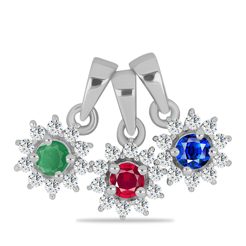 Stříbrná Sada s Madagaskarským Rubínem a Brazilským Smaragdem ( Přívěsek )