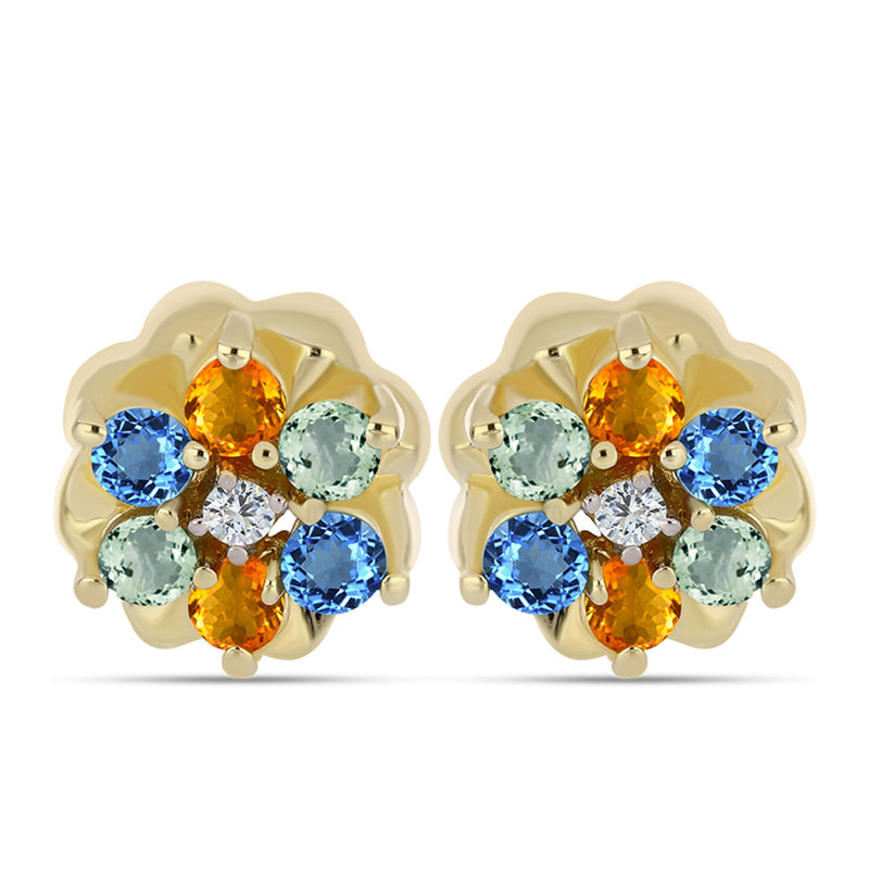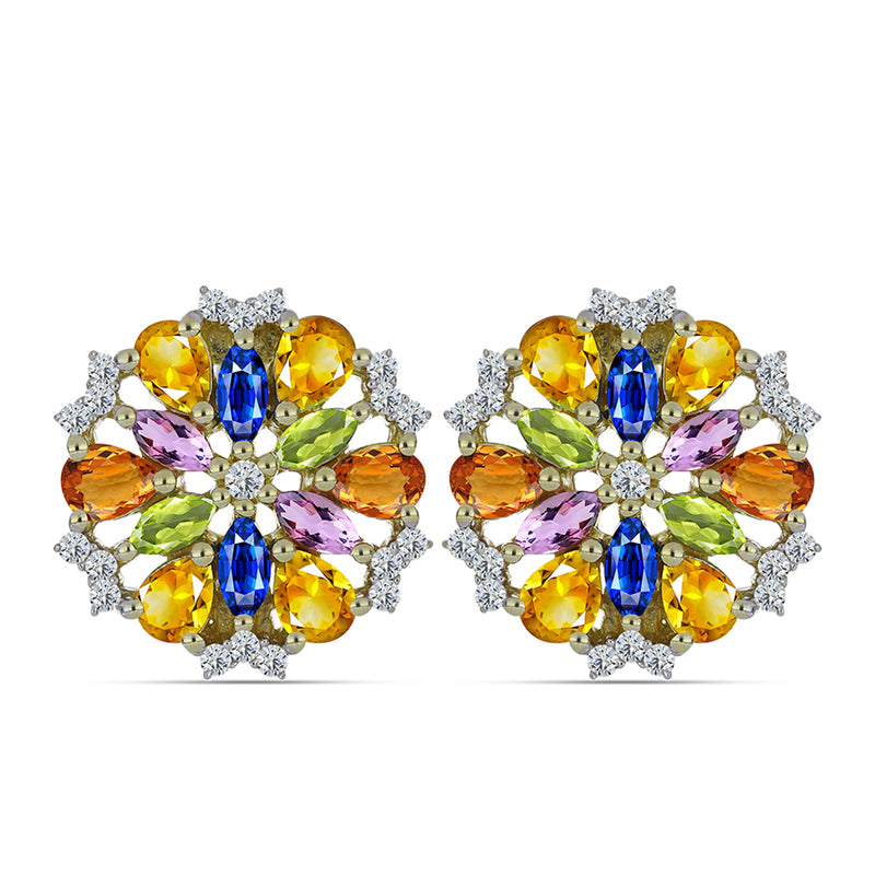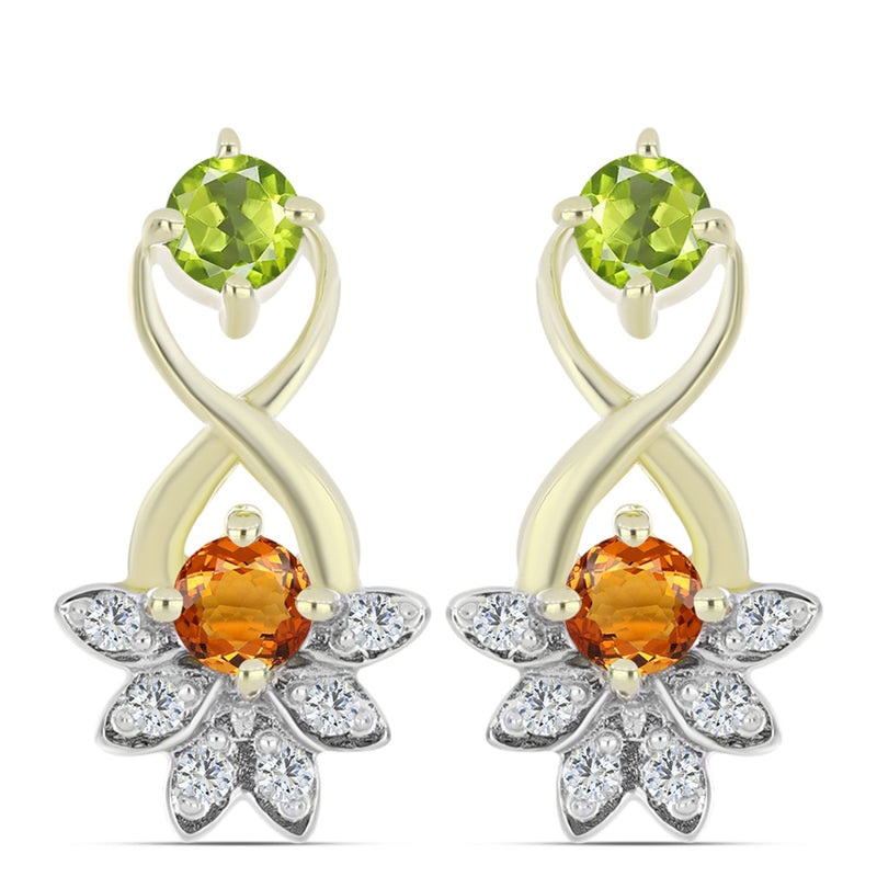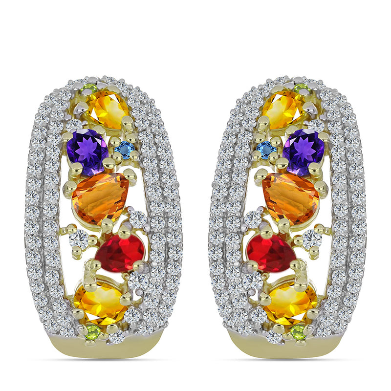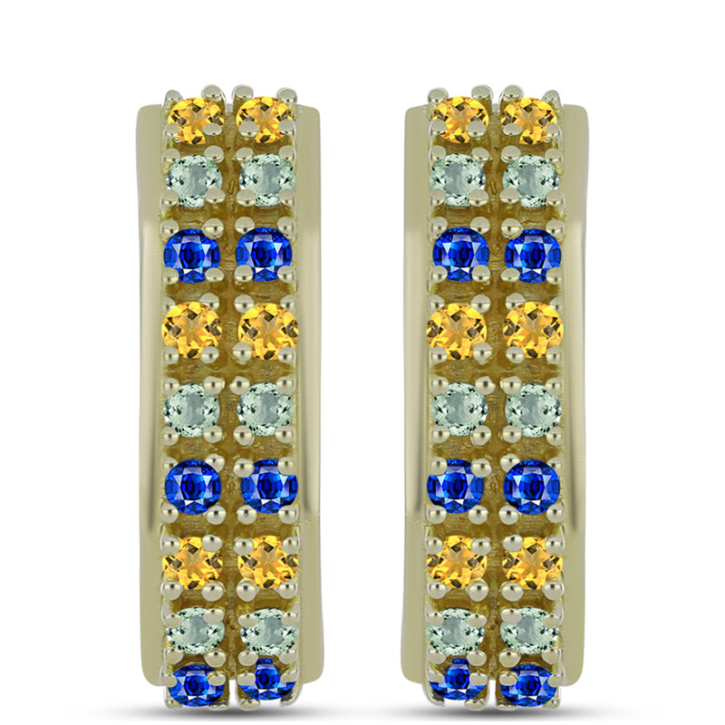 Pozlacené Stříbrné Náušnice s Duhovým Safírem a Bílým Topazem