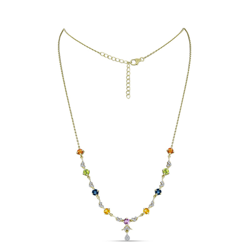 Pozlacený Stříbrný Náhrdelník s Duhovým Safírem a Bílým Topazem