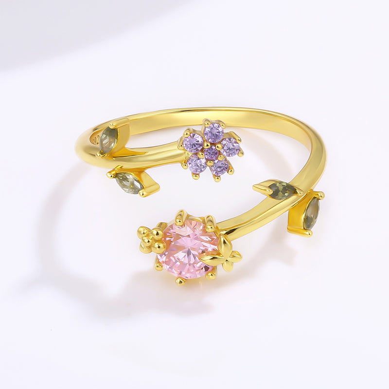 Pozlacená slitina Prsten s Růžovým Emporia® Křišťálem a Fialovým Emporia® Křišťálem přibližná hmotnost: 10 gramů
