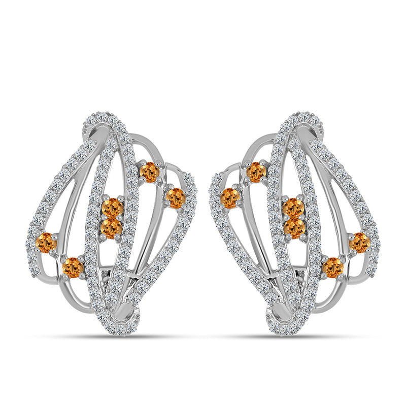 Stříbro 925/1000 Náušnice s "Císařským žlutým" topazem a Bílým Topazem - Karátové číslo: 1.46. přibližná hmotnost: 5.9 gramů