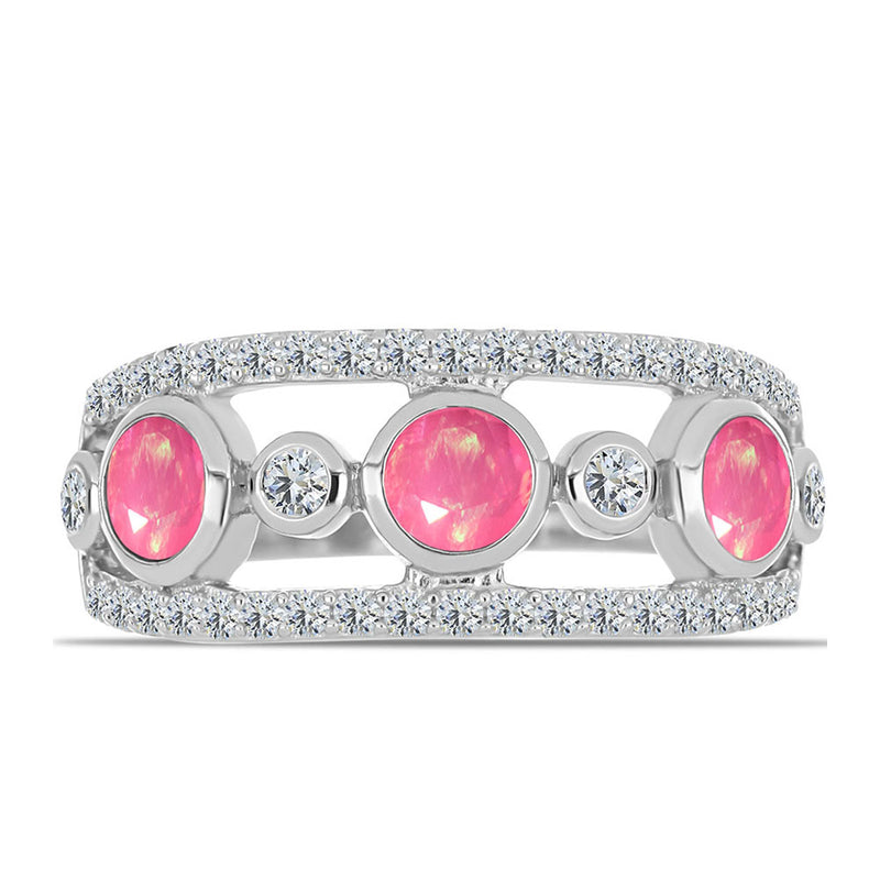 Stříbro 925/1000 Prsten s Růžovým Opálem z Lega Dembi a Bílým Topazem - Karátové číslo: 0.19. přibližná hmotnost: 2.96 gramů
