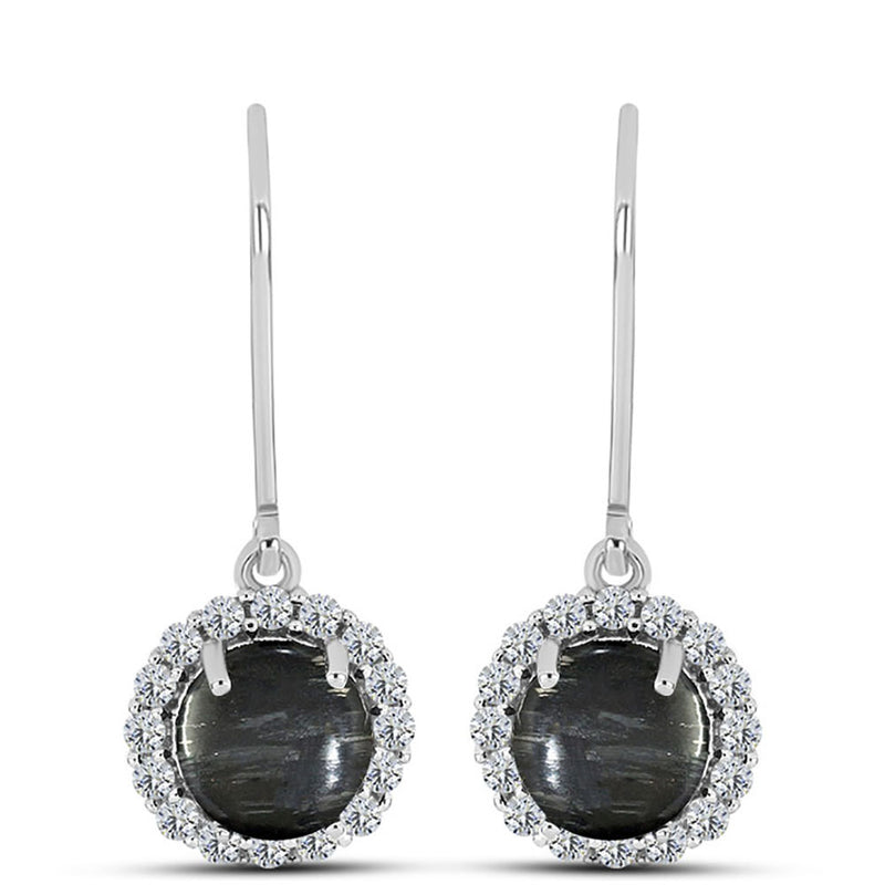 Stříbro 925/1000 Náušnice s Picasso Jaspisem a Bílým Topazem - Karátové číslo: 3.79. přibližná hmotnost: 3.19 gramů