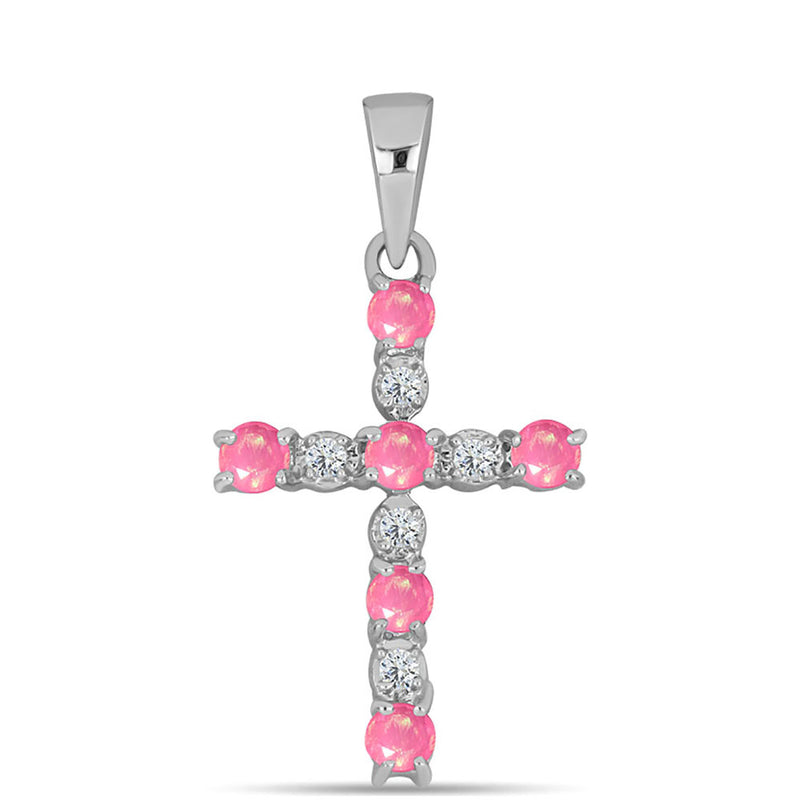 Stříbro 925/1000 Přívěsek s Růžovým Opálem z Lega Dembi a Bílým Topazem - Karátové číslo: 0.31. přibližná hmotnost: 1.1 gramů