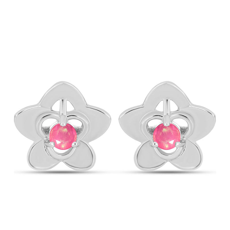 Stříbro 925/1000 Náušnice s Růžovým Opálem z Lega Dembi - Karátové číslo: 0.19. přibližná hmotnost: 2.58 gramů