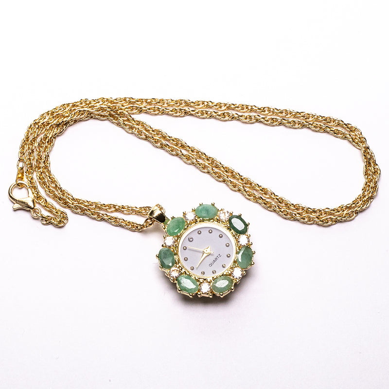 Pozlacený Slitinový Náhrdelník se Smaragdem a Bílým Emporia® Křišťálem ( Náhrdelník+Přívěsek )