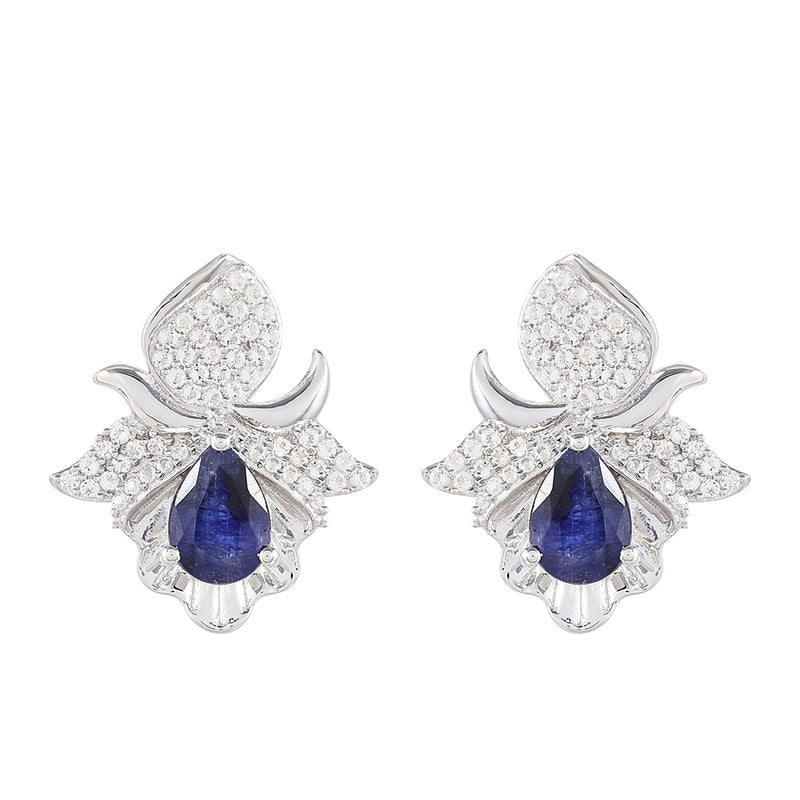 Stříbro 925/1000 Náušnice s Thajským Safírem a Bílým Topazem - Karátové číslo: 2.56. přibližná hmotnost: 5.32 gramů