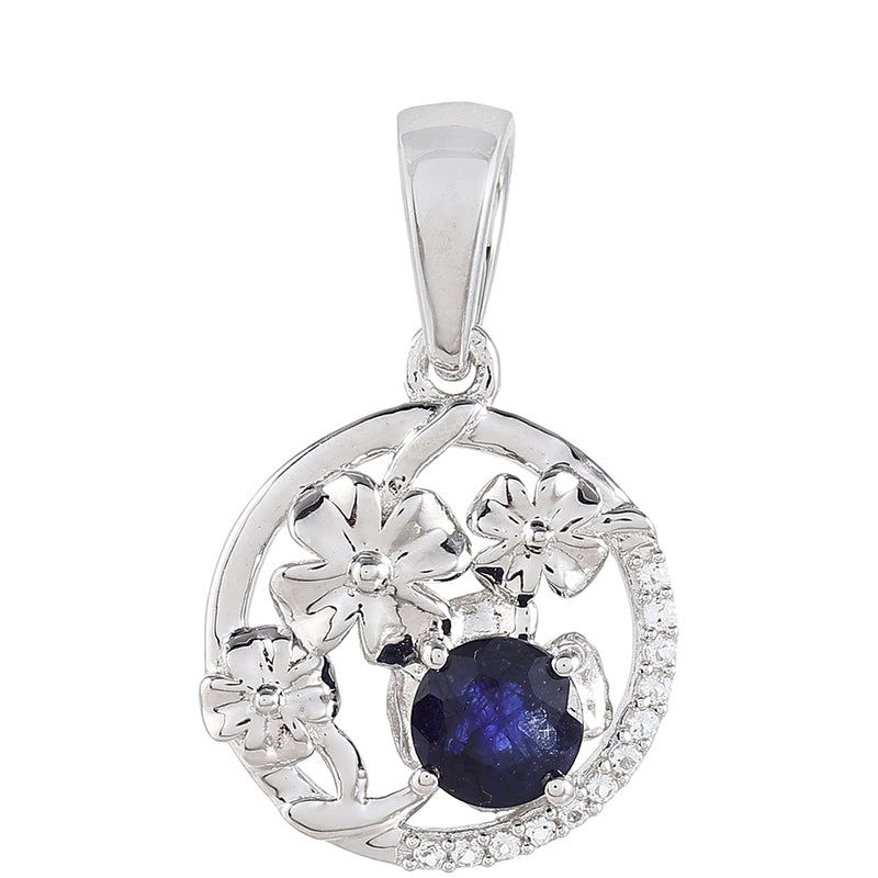 Stříbro 925/1000 Přívěsek s Thajským Safírem a Bílým Topazem - Karátové číslo: 0.79. přibližná hmotnost: 2.27 gramů