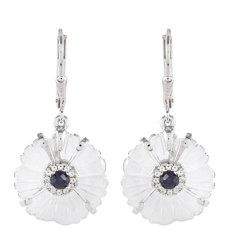 Stříbro 925/1000 Náušnice s Thajským Safírem a Křišťálovým Křemenem - Karátové číslo: 13.14. přibližná hmotnost: 5.58 gramů