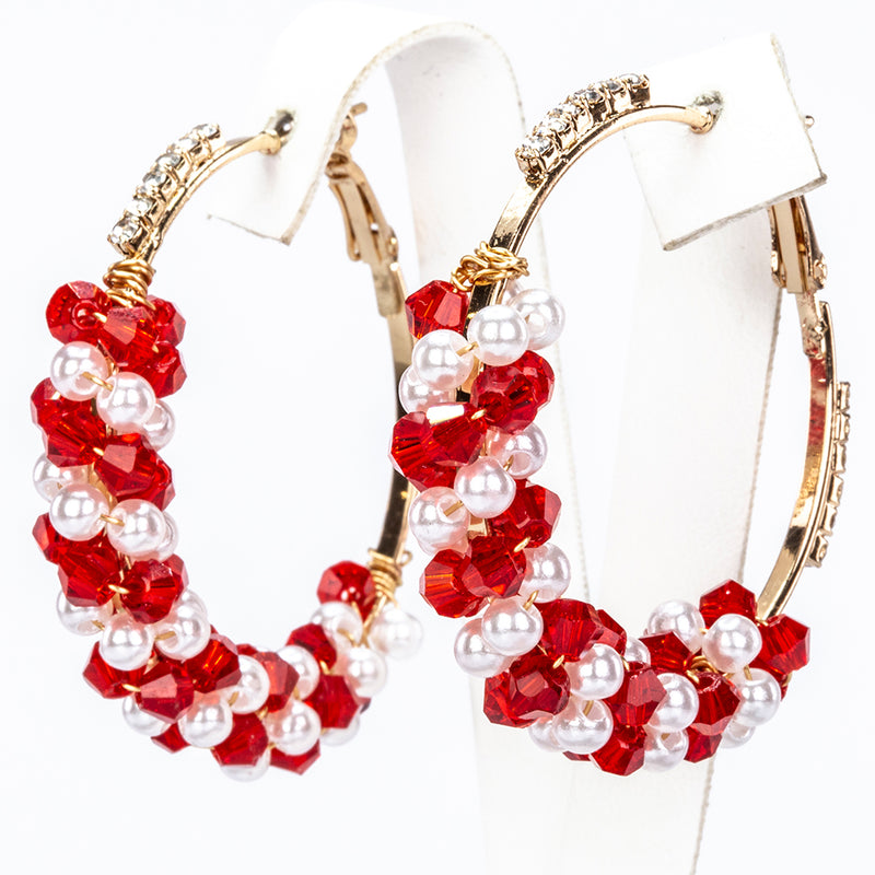 Pozlacené Slitinové Náušnice s Skleněná Perla a Červeným Emporia® Křišťálem