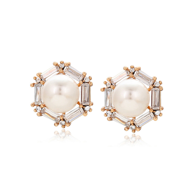 Pozlacené Slitinové Náušnice se Skleněná Perla a Bílým Emporia® Křišťálem