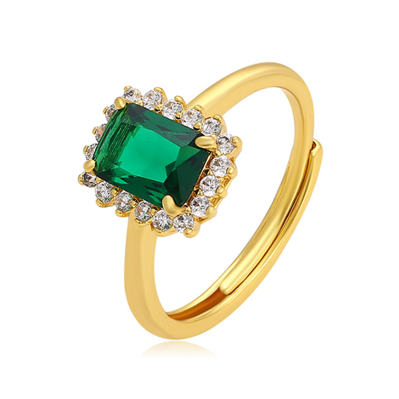 Pozlacený Slitinový Prsten se Zeleným Emporia® Křišťálem a Bílým Emporia® Křišťálem