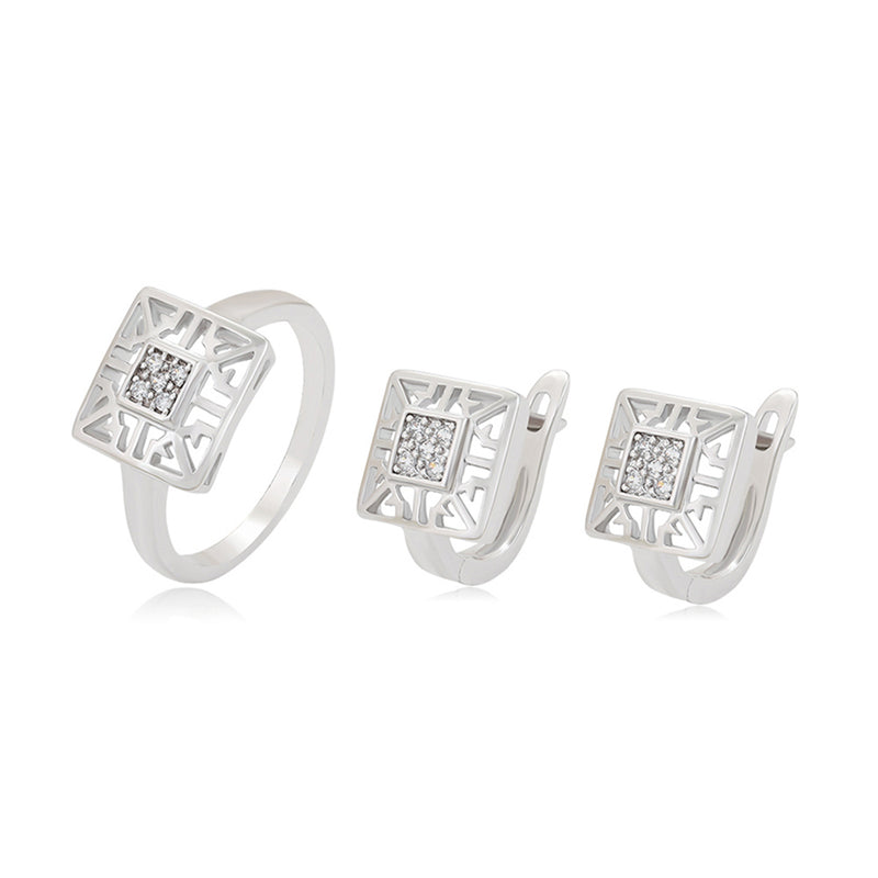 Pozlacená Slitinová Sada s Bílým Emporia® Křišťálem ( Náušnice+Prsten )