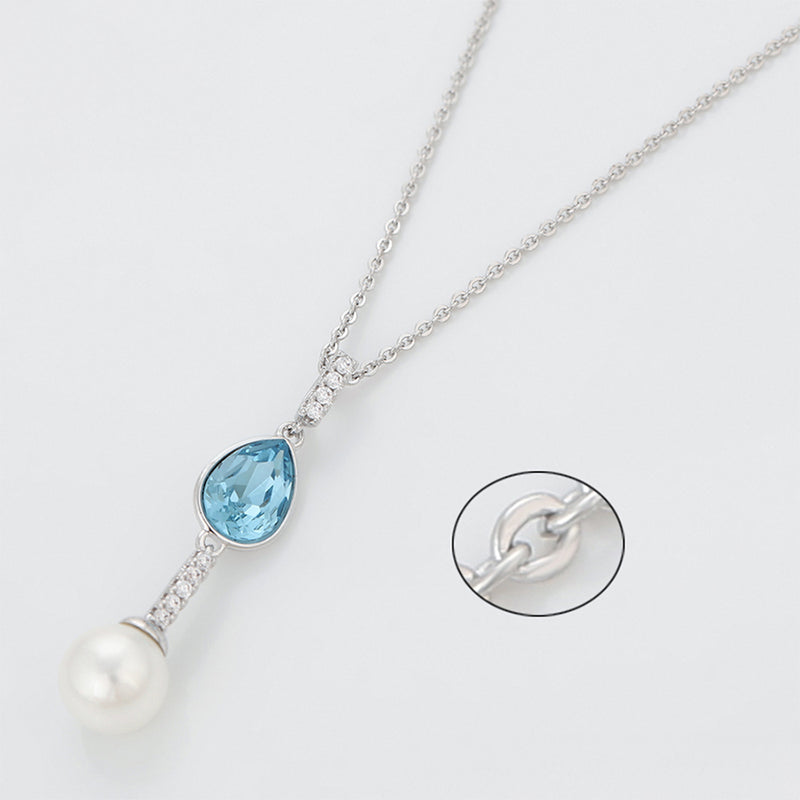 Pozlacený Slitinový Náhrdelník s Modrým Emporia® Křišťálem a se Skleněná Perla