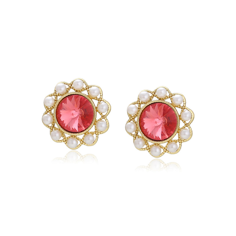 Pozlacené Slitinové Náušnice s Červeným Emporia® Křišťálem a se Skleněná Perla