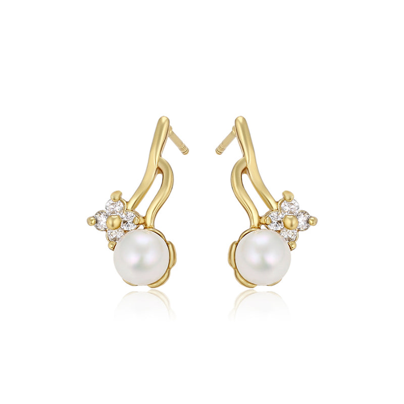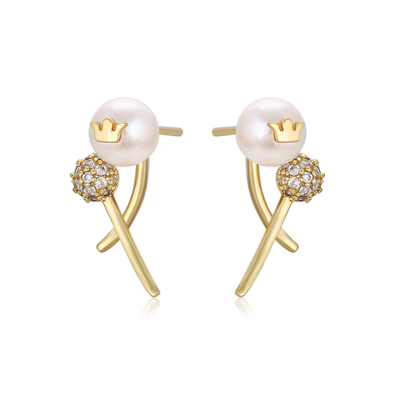 Pozlacené Slitinové Náušnice se Skleněná Perla a Bílým Emporia® Křišťálem